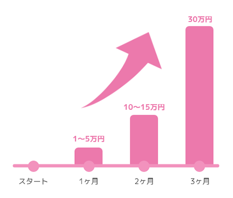 あくまで目安ですが、ちゃんと続けていけば3ヶ月目には月収30万円を超える方が多いです。こんな感じで報酬が増えていきます。